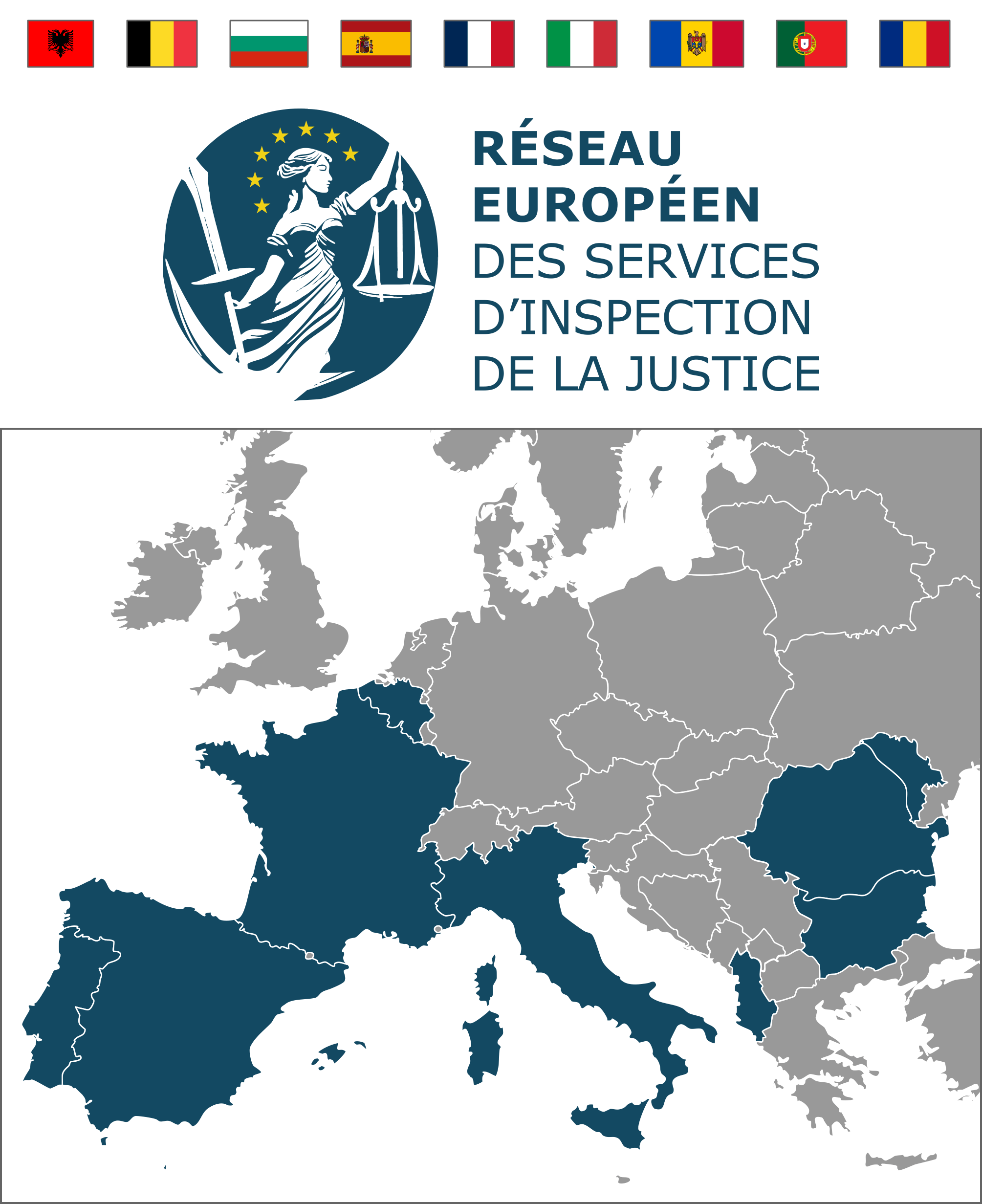 Le Réseau Européen des services d'Inspection de la Justice est composé de huit membres : France, Belgique, Portugal, Italie, Roumanie, Bulgarie, Espagne et Albanie.